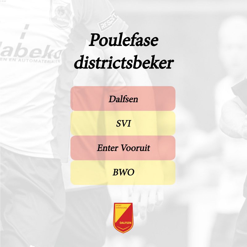 In de groepsfase van de districtsbeker krijgt SV Dalfsen te maken met SVI, Enter Vooruit en BWO. Vandaag maakte de KNVB de indelingen van de poules bekend.