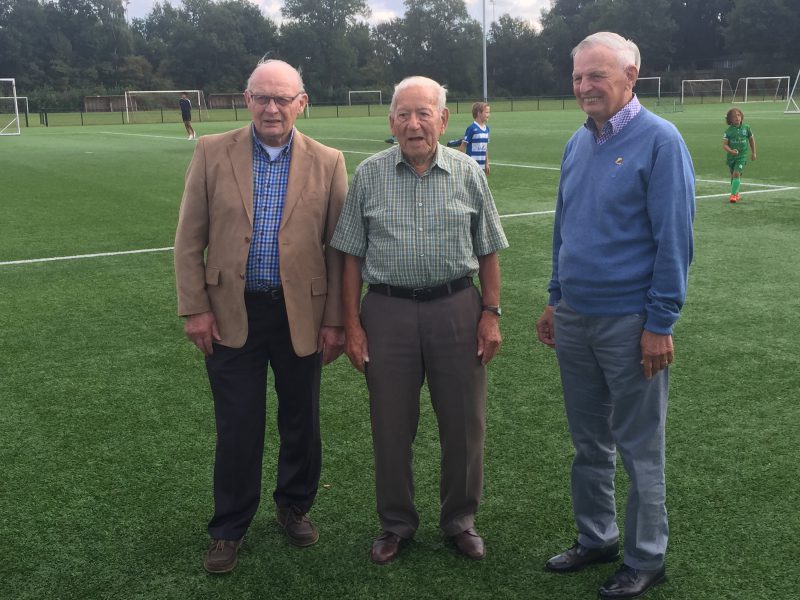 Een bijzondere foto uit de archieven van SV Dalfsen is zaterdagmiddag nagemaakt. Tijdens de reunie voor oud-leden poseerden Gerard Feyen, Geert Wildvank (bijna 98 jaar) en Theo Feyen samen op het voetbalveld. Dat deden ze 67 jaar eerder ook. Destijds voetbalden de drie in het eerste team van AVV, een voorloper van SV Dalfsen.