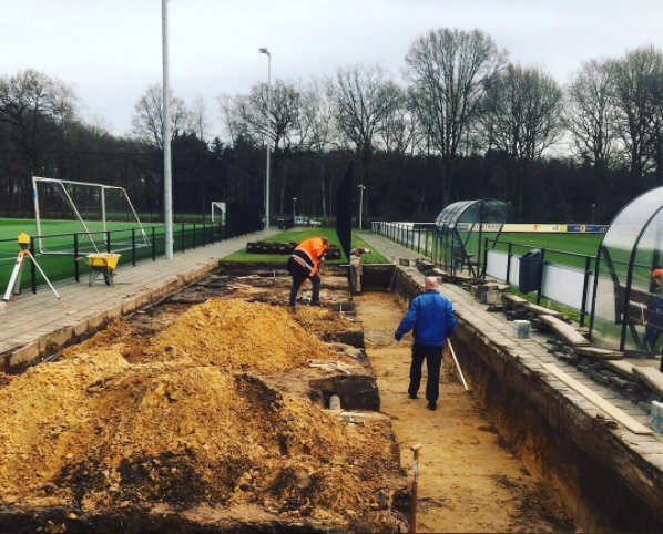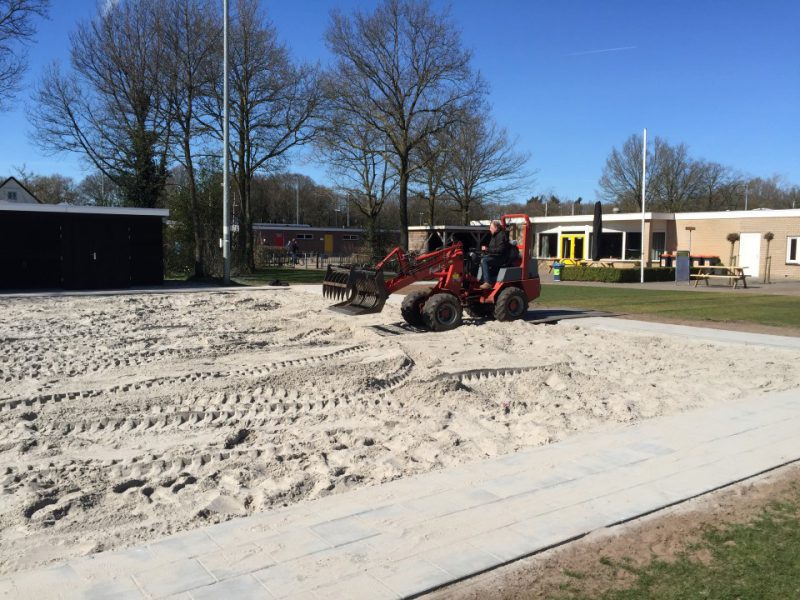 18. Voor de kantine wordt gewerkt aan de aanleg van het beachveld. Met dank aan de Clubkascampagne van een jaar eerder kan dit worden gerealiseerd. (Maart)