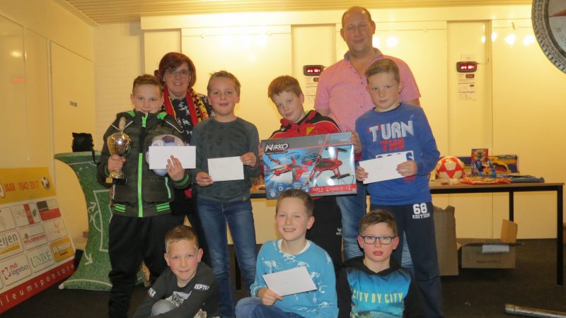 Er waren maar liefst 7 jeugdspelers die meer dan 50 loten hadden verkocht. Al deze topverkopers waren aanwezig en werden รฉรฉn voor รฉรฉn naar voren geroepen. Hier kregen ze uit handen van Karla Noordman een mooie prijs overhandigd en gaan ze later in het jaar nog een keer met zijn allen naar een interland of een aantrekkelijke eredivisiewedstrijd. De top drie, respectievelijk Teun Noordman (1), Roan van der Vegt (2) en Chiel Haarman (3) werden nog eens extra gehuldigd, samen waren ze goed voor maar liefst ruim 300 verkochte loten. Grote klasse mannen!
