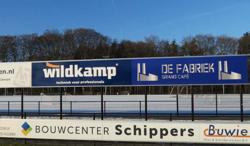 Vanmorgen zijn weer diverse reclameborden rondom het hoofdveld van Sportpark Gerner geplaatst. De tweede ring is verrijkt met borden van Wildkamp, X-ICT en De Fabriek. Op de ‘begane grond’ zijn twee borden geplaatst van Printhuus en Intertermo. Het sportpark is hiermee weer een stukje mooier geworden en wij danken onze sponsoren voor hun bijdrage.