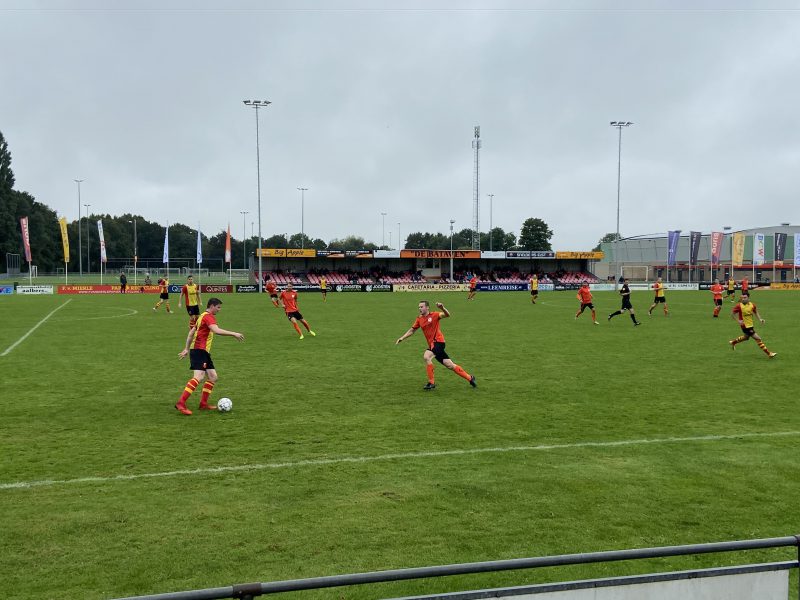 Op Sportpark Walburgen was het natuurgras ondanks de hevige regenval goed bespeelbaar. Na een lange busreis begon Dalfsen alleraardigst aan het duel. Al snel kreeg Daan van der Vegt een open kopkans op aangeven van Kariem Own, maar Bataven-goalie Jamie Dekkers redde knap. Daarna nam de thuisploeg de overhand. Dat de openingstreffer in de 35e minuut viel, zat er in de fase daarvoor al even aan te komen. Het was uiteindelijk Thomas Demont die van dichtbij binnen knikte. Vlak voor rust was Joren Rietman met een vrije trap nog dicht bij de gelijkmaker, maar doelman Dekkers bleek wederom een sta-in-de-weg.