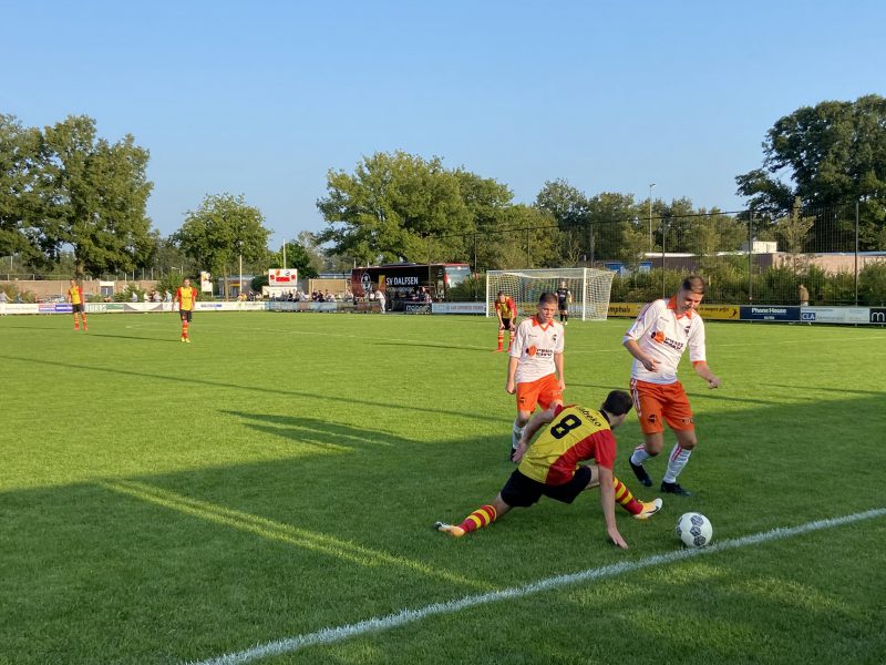 Na vier oefenduels (drie zeges, één nederlaag) stond de eerste bekerwedstrijd van het seizoen op het programma. Op het eigen hoofdveld begon SV Dalfsen met nieuwkomer Jesse Bos in het hart van de verdediging, hij kwam in de zomer over van ASC’62. In de tweede helft maakten ook Yoren Dam (17 jaar), Kariem Own (19) en Rens Brekveld (19) hun eerste officiële minuten in de ploeg van trainer Jacob Grooten.