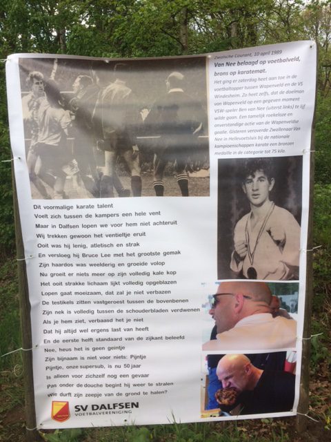 Ook veteraan Bennie van Nee ontkwam er niet aan. Afgelopen donderdag vierde hij zijn 50e verjaardag en kreeg hij Abraham op bezoek. Een grote groep veteranen verzamelde zich op woensdagavond bij de ingang van Rosengaarde en in no-time was deze entree omgetoverd tot een kleurrijk geheel. Nadat de hoofdpersoon in kwestie was ingeseind kwam hij poolshoogte nemen. Hier zag hij dat zijn verleden als karate kid als inspiratiebron was gebruikt voor de spandoeken. Aansluitend werd de warme woonkamer opgezocht voor een hapje en een drankje.
