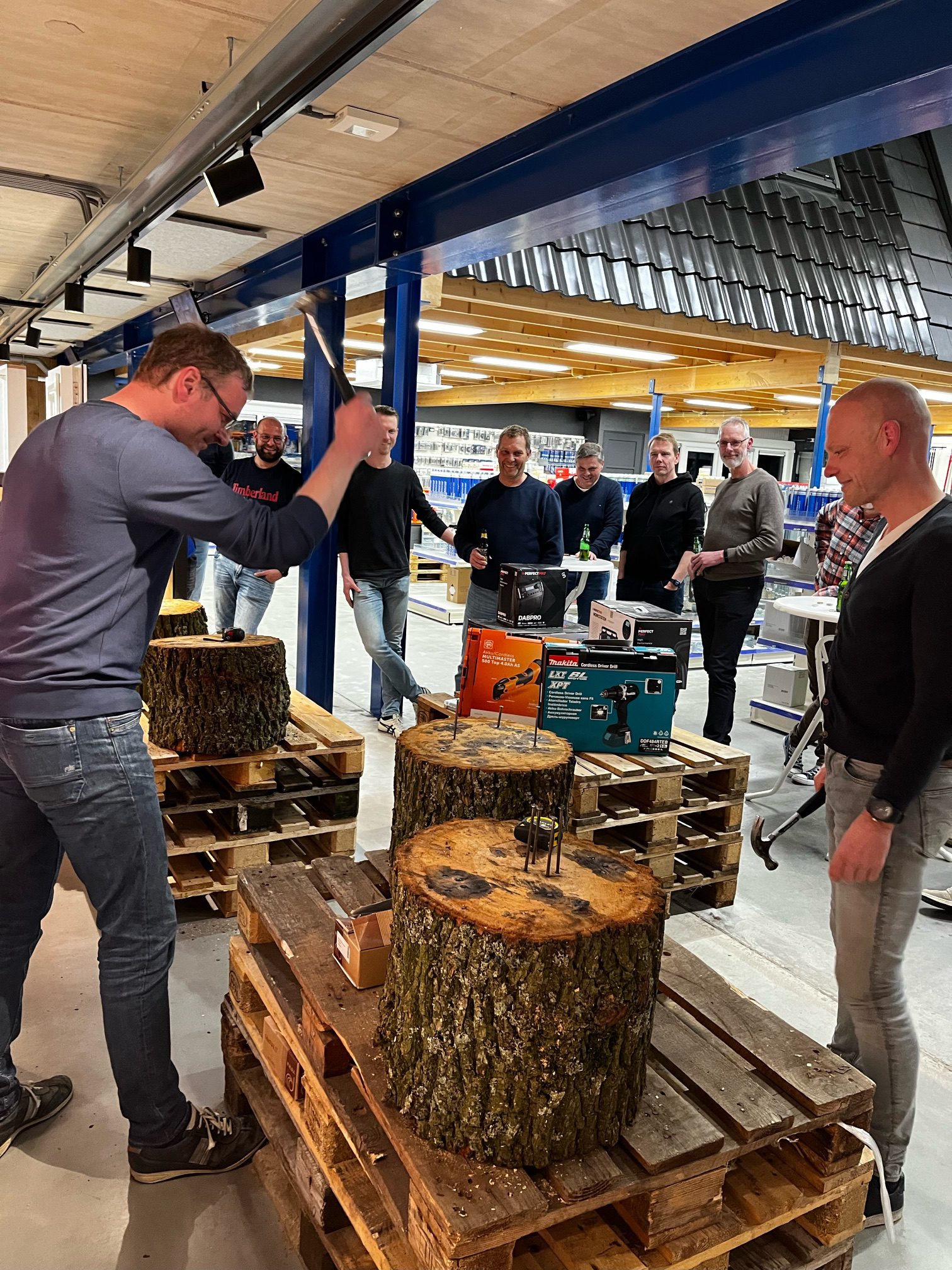 Na deze voedzame maaltijd moesten de mannen aan de bak, in vier poules volgde een competitie spijkerslaan. Het materiaal was door Richard Schippers verzorgd dus was uitstekend voor elkaar. Er werden vele spijkers geslagen en dit leverde uiteindelijk een winnaar op, Henri Dominee was het meest doeltreffend. Uit handen van de organisatie kreeg hij de bokaal overhandigd in de vorm van een gegrafeerde voorhamer.