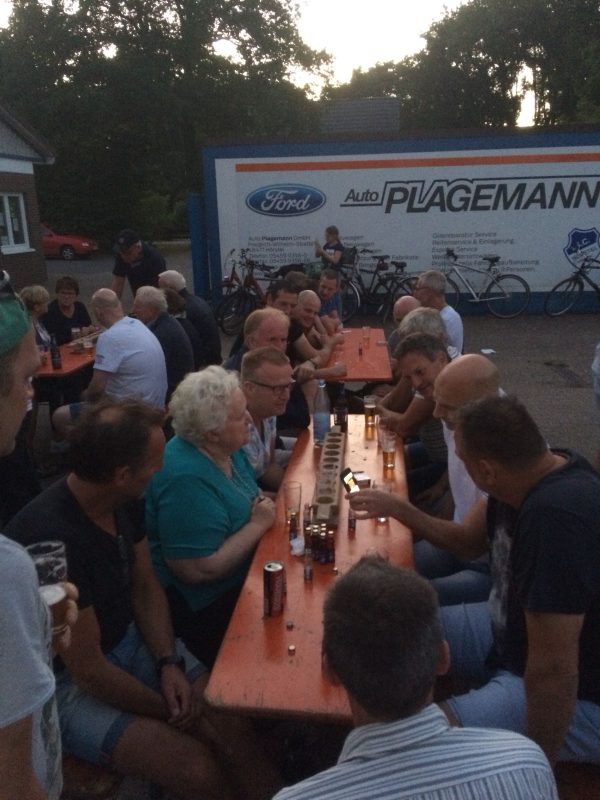 Al snel werd het terras opgezocht en ook dit had de organisatie van SC Hörstel aardig onder de knie. Een ware grillmeister verzorgde het vlees, het bier was heerlijk koel en af en toe een schnapsje was ook niet verkeerd. Nadat de wedstrijd uitgebreid geëvalueerd was werd het hotel opgezocht waar nog een klein examenfeestje bezig was. Uiteindelijk wist iedereen een bed te vinden en even later was het al weer licht. Na een goed ontbijt werd de reis naar Dalfsen aanvaard waarbij Sjakie het nodig vond om onderweg nog een kleine orale attentie in Duitsland achter te moeten laten. De echte die-hards gingen door naar het sproeifeest in Hoonhorst, maar dat zat er voor Sjakie niet meer in.
