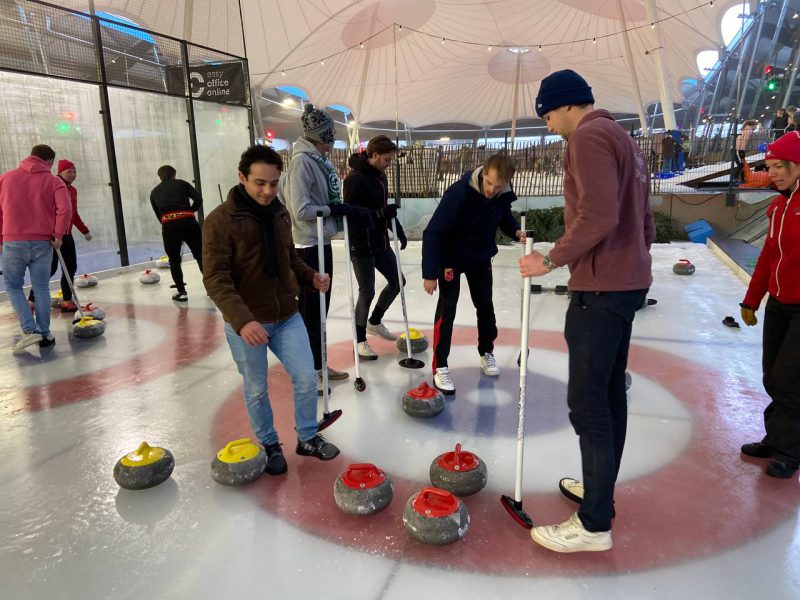 Afgelopen zaterdag vertrok de ploeg met een bus van sponsor South West Tours naar ijsbaan De Scheg in Deventer. Daar volgde eerst een uitleg van deze precisiesport. Al snel bleek het schuiven van de 19 kilogram zware granieten steen toch niet zo eenvoudig als het er op tv soms uitziet. Maar na de nodige oefeningen kon uiteindelijk worden afgesloten met een fanatieke eindpartij.