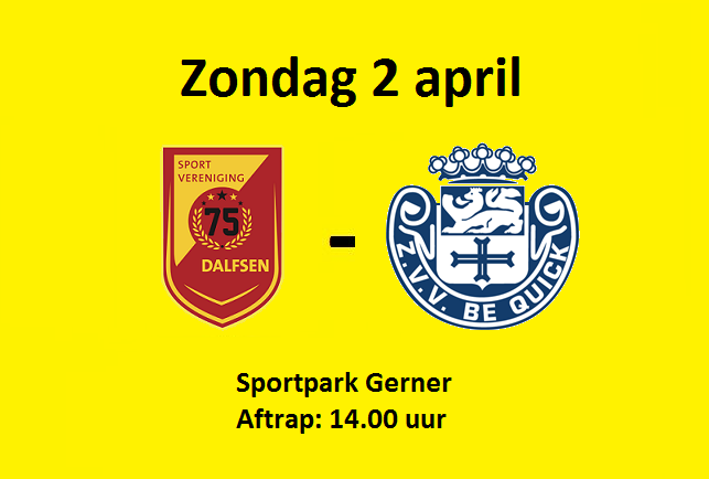 Be Quick Zutphen staat met 23 punten uit 19 wedstrijden op een verdienstelijke negende plaats. De ploeg draait momenteel aardig want de laatste vier wedstrijden werden gewonnen! Aan SV Dalfsen de taak om aan deze zegereeks een eind te maken.