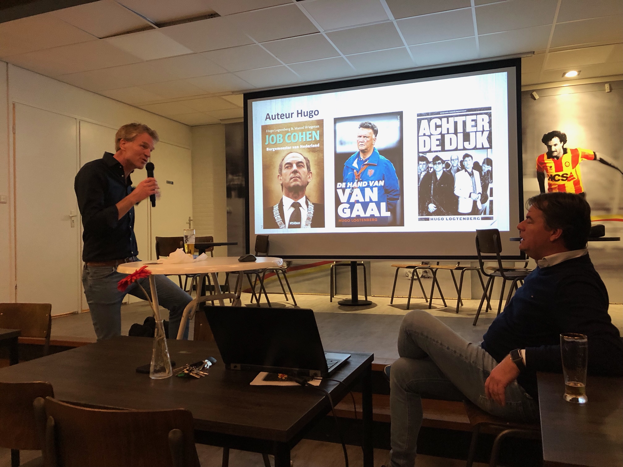Na de pauze was het de beurt aan Raymond Bakema die oud Dalfsenaar en oud SVD-er Hugo Logtenberg op een luchtige wijze interviewde. Hugo heeft inmiddels een behoorlijke carrière als schrijver, presentator en journalist achter de rug. Zo heeft hij boeken geschreven over Van Gaal, De Dijk en Job Cohen en hiermee diverse prijzen gewonnen.