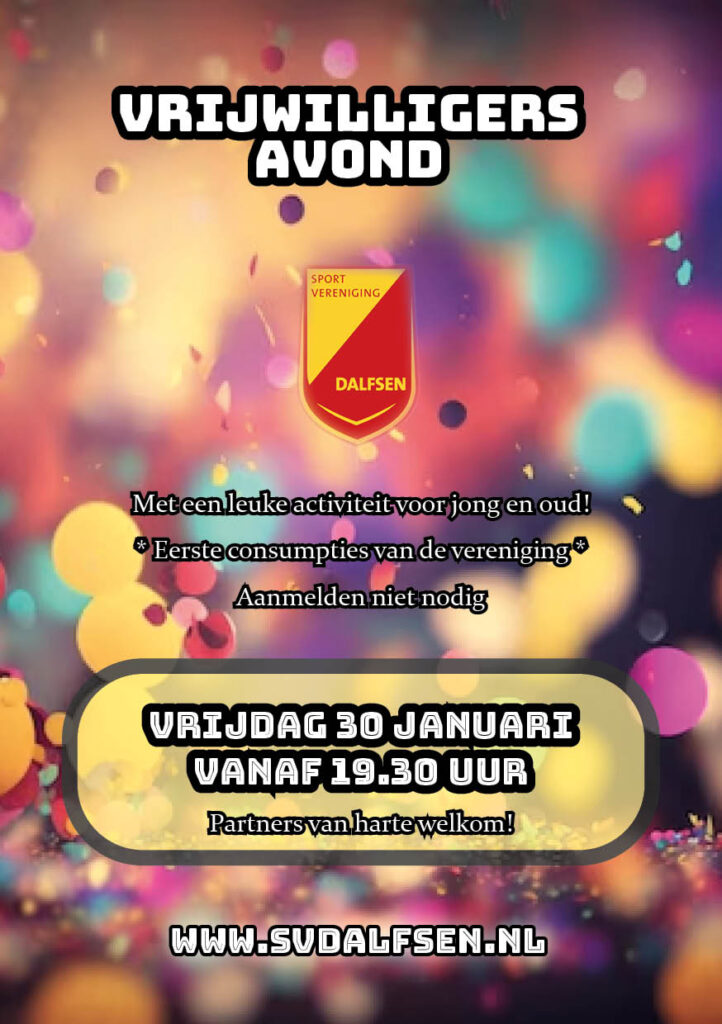 De organisatie van de vrijwilligersavond verstuurt geen persoonlijke uitnodigingen. Deze aankondiging geldt als uitnodiging voor iedereen die zich als โechteโ vrijwilliger inzet voor SV Dalfsen.