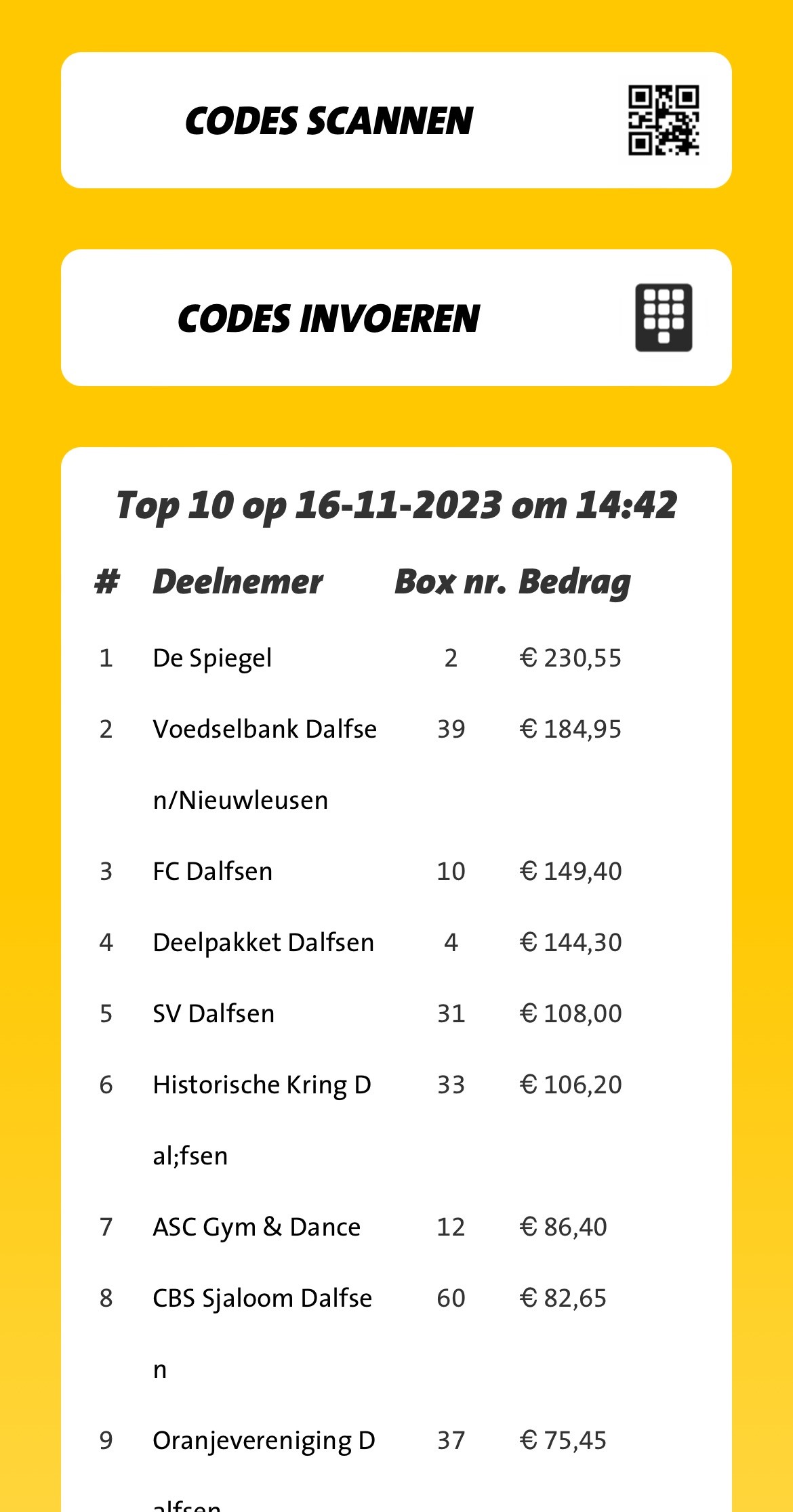 Bij elke EUR 15 aan boodschappen ontvangt de klant coupon met een speciale QR code met een waarde van EUR 0,15. De coupons kunnen gedoneerd worden aan de deelnemende verenigingen, waaronder SV Dalfsen. Hiervoor zijn speciale tijdelijke brievenbusjes geïnstalleerd nabij de uitgang, SV Dalfsen heeft brievenbus 31.