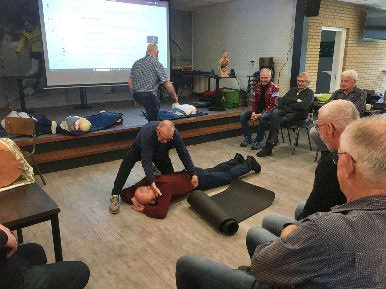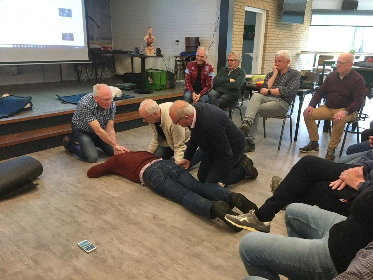 De mannen van de Walking Football hebben afgelopen donderdag leren reanimeren. In samenwerking met de EHBO vereniging Hoonhorst-Dalfsen en Saam Welzijn was een aantrekkelijk programma samengesteld en mede door het regenachtige weer was de opkomst uitstekend.