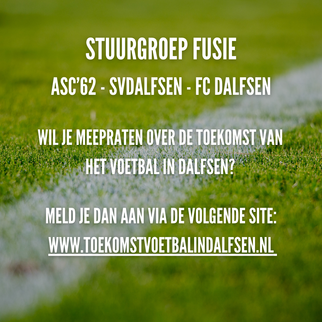Afgelopen woensdag vond de kick off plaats betreffende het vervolg van een mogelijke fusie tussen de voetbalverenigingen in Dalfsen. De stuurgroep is nu op zoek naar betrokken leden die willen meepraten over de toekomst van het voetbal in Dalfsen. Is je interesse gewekt, meld je dan aan voor รฉรฉn van de werkgroepen via de volgende website: www.toekomstvoetbalindalfsen.nl.